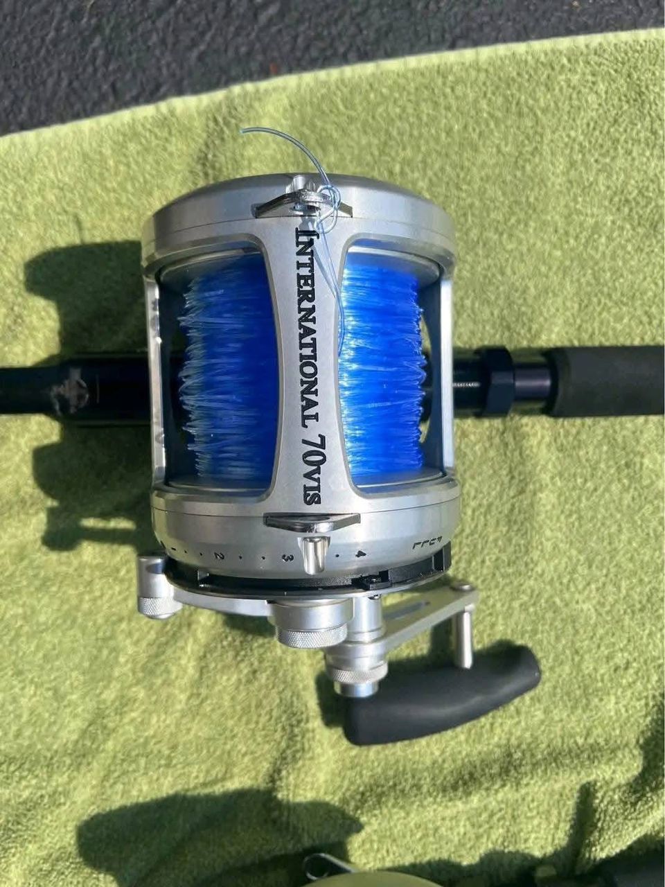 Fresh out of the box: modern 70‑class two‑speed reel with huge line capacity and serious drag performance, ideal for 100–150 lb line and deep‑water big‑game work.